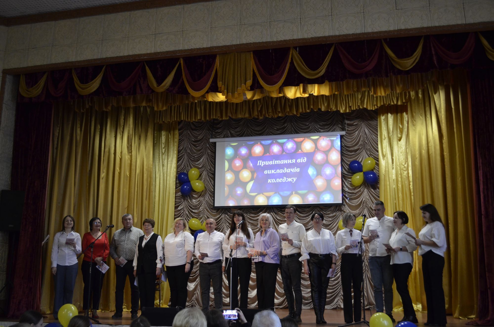Після цього до привітань долучилися адміністрація коледжу та керівники академічних груп. Їхній гумористично-поетичний виступ став одним із найяскравіших моментів свята: побажання легких сесій, добрих викладачів, міцної кави, автоматів у заліковій книжці та студентського драйву викликали щирий сміх і теплі оплески.